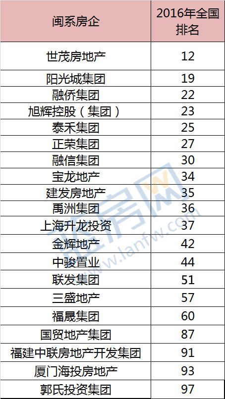 由中國房地產業(yè)協(xié)會、中國房地產測評中心聯合主辦的2016中國房地產500強測評成果發(fā)布會于3月22日在北京舉行。據統(tǒng)計,2016年中國房地產500強房企前100強名單中,閩系房企獨占20席。前50強名單中,閩系軍團更是“霸”住14席。