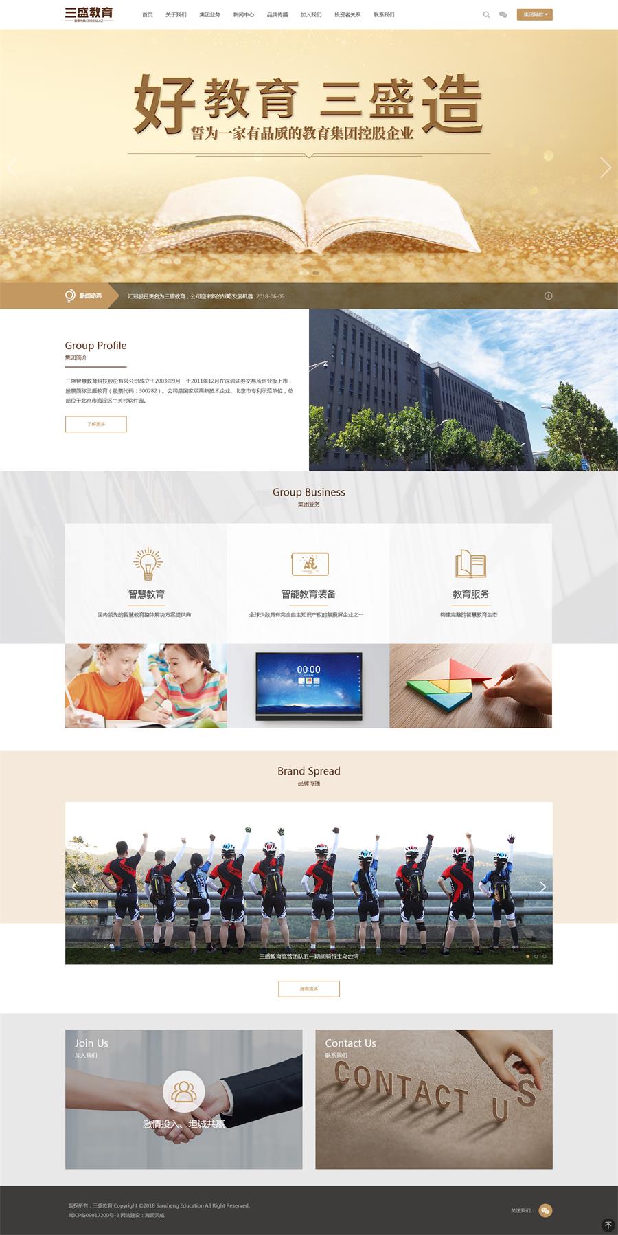 三盛智慧教育科技股份有限公司成立于2003年9月,于2011年12月在深圳證券交易所創(chuàng)業(yè)板上市,股票簡稱三盛教育(股票代碼:300282)。公司是國家級高新技術(shù)企業(yè)、北京市專利示范單位,總部位于北京市海淀區(qū)中關(guān)村軟件園。