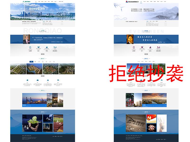 近日,發(fā)現(xiàn)地產(chǎn)企業(yè)官網(wǎng)抄襲我司設(shè)計(jì)制作的"融僑集團(tuán)"官網(wǎng);海西天成每逢設(shè)計(jì)作品更新,必將迎來抄襲,因此,我們真誠地建議同行“抄風(fēng)格,不復(fù)制”,海西天成愿意“做榜樣,不做幫兇”;希望大家都能提高企業(yè)素質(zhì),提升建站水平,共同維護(hù)行業(yè)秩序。